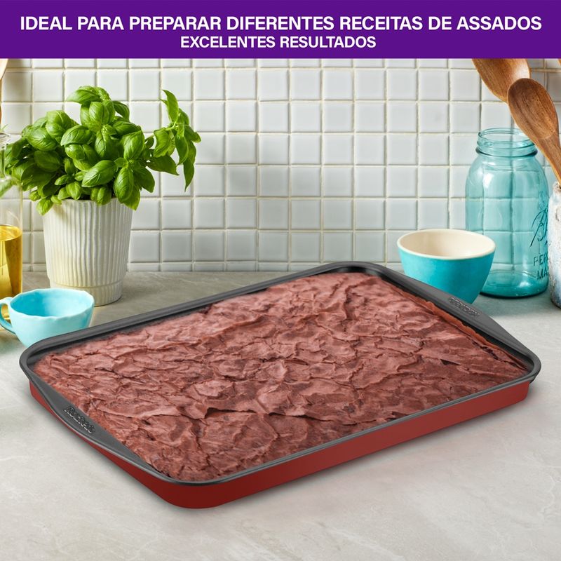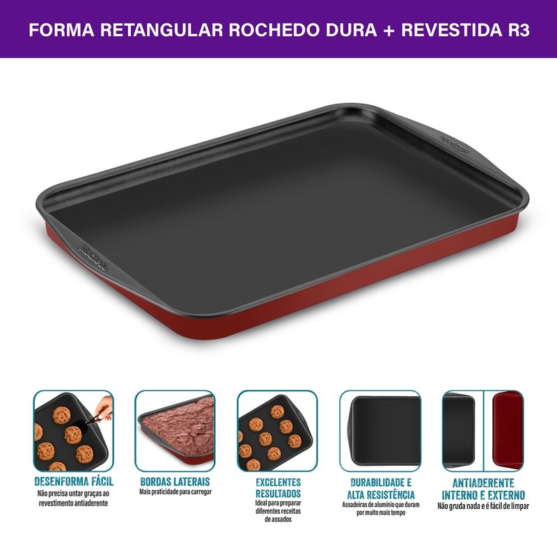 Assadeira Rasa Retangular com Revestimento Antiaderente Rochedo Dura+ 37cm | Rochedo