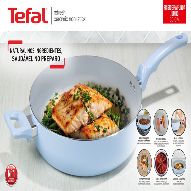Frigideira Funda 30cm Tefal Refresh Ceramic Azul Ártico