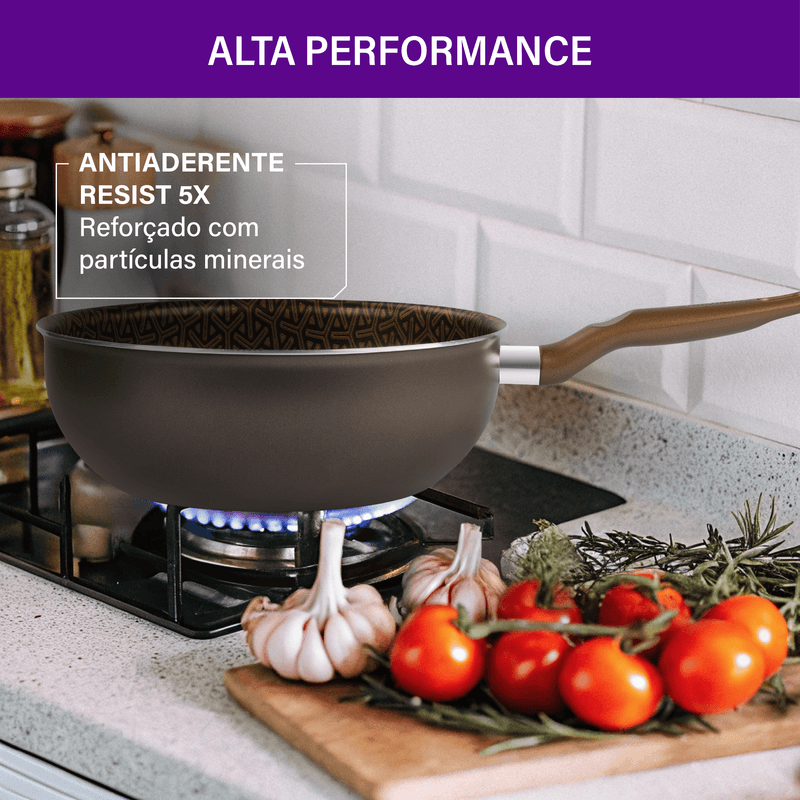 Frigideira Wok Rochedo Expert Chocolate 24cm