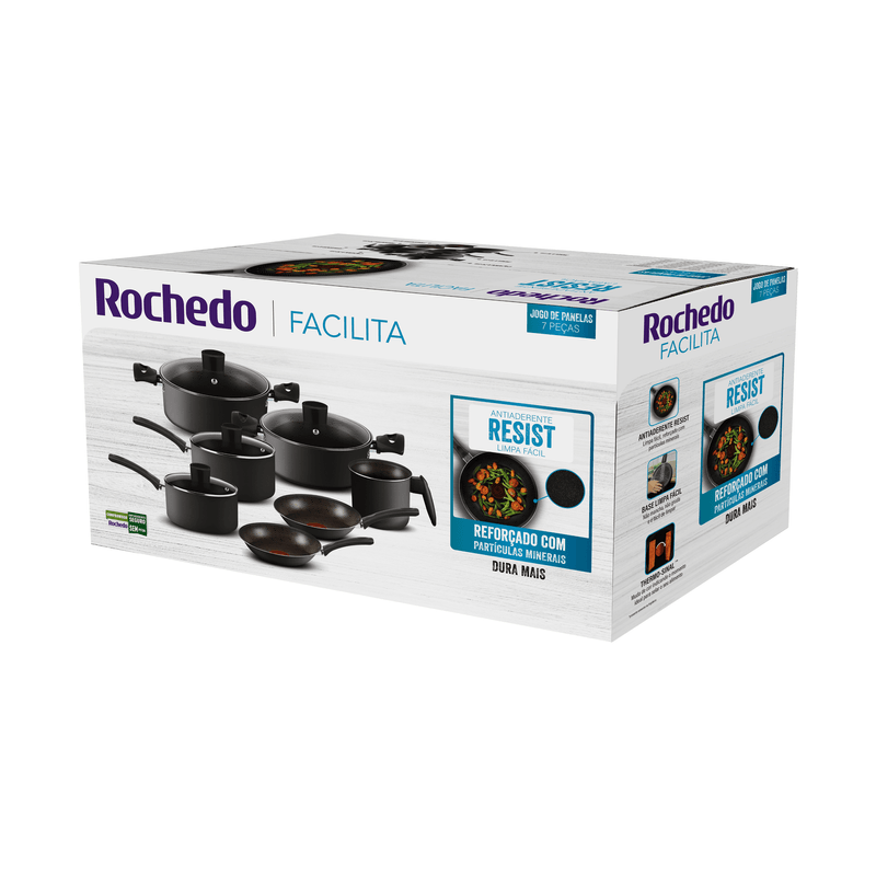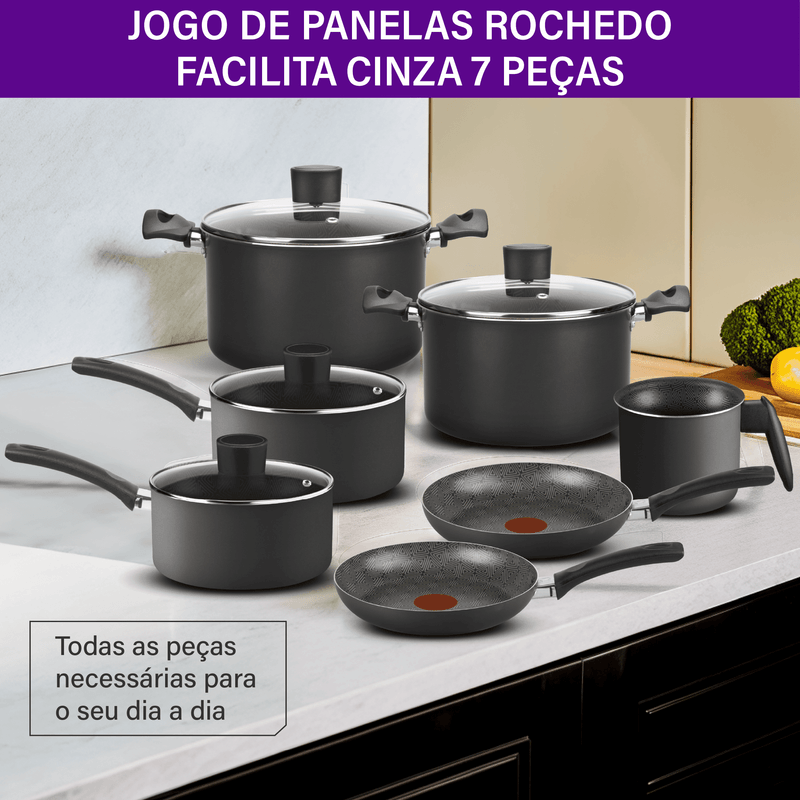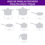 Jogo de Panelas Rochedo Facilita Cinza 7 Peças