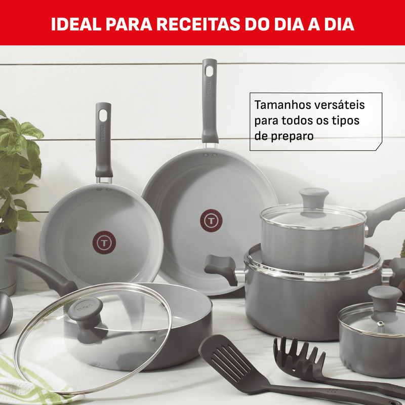 Jogo de Panelas Tefal Recycled Ceramic Cinza 10 Peças