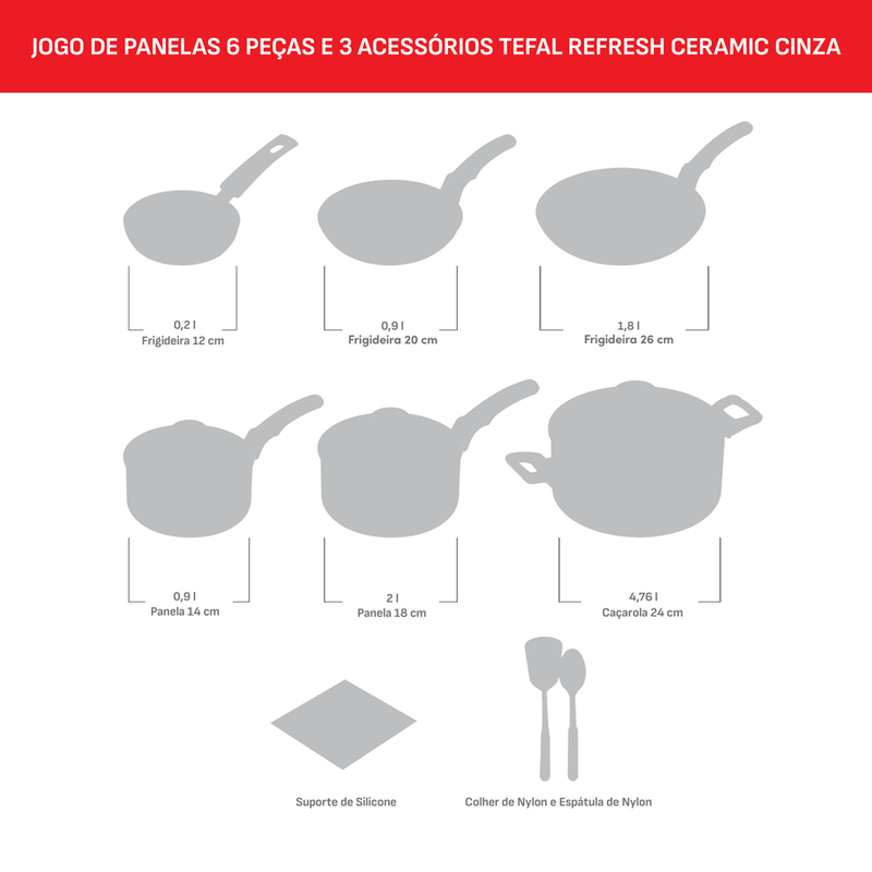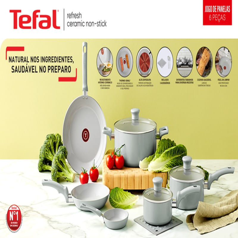 Jogo de Panelas Tefal Refresh Ceramic Cinza 6 Peças + 3 Acessórios