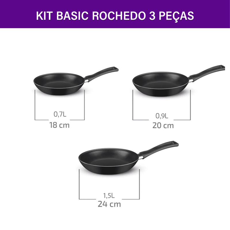 Kit de Frigideiras Rochedo Basic 18cm, 20cm e 24cm