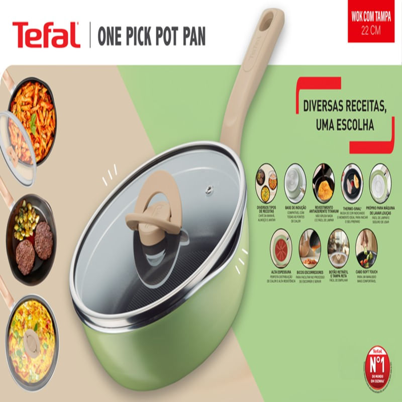 Wok 22cm Tefal One Pick Pot Pan Verde